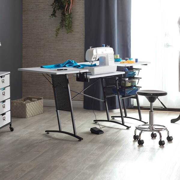 Top Product Reviews For Sew Ready Mobile Folding Height Adjustable Quilting Fabric Cutting Table With Sewing Board Grid And Storage In Silver White Top 28586391 Overstock