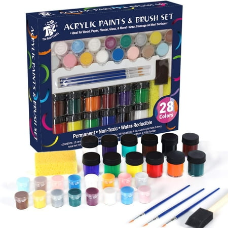 Tbc The Best Crafts Acrylic Paint Set 28 Vivid Basic Glitter Metallic Acrylic Paint Sponge Painting Tools Kit For Canvas Rock Painting Non Toxic Acrlic Paint Ideal Craft Paint For Kids And